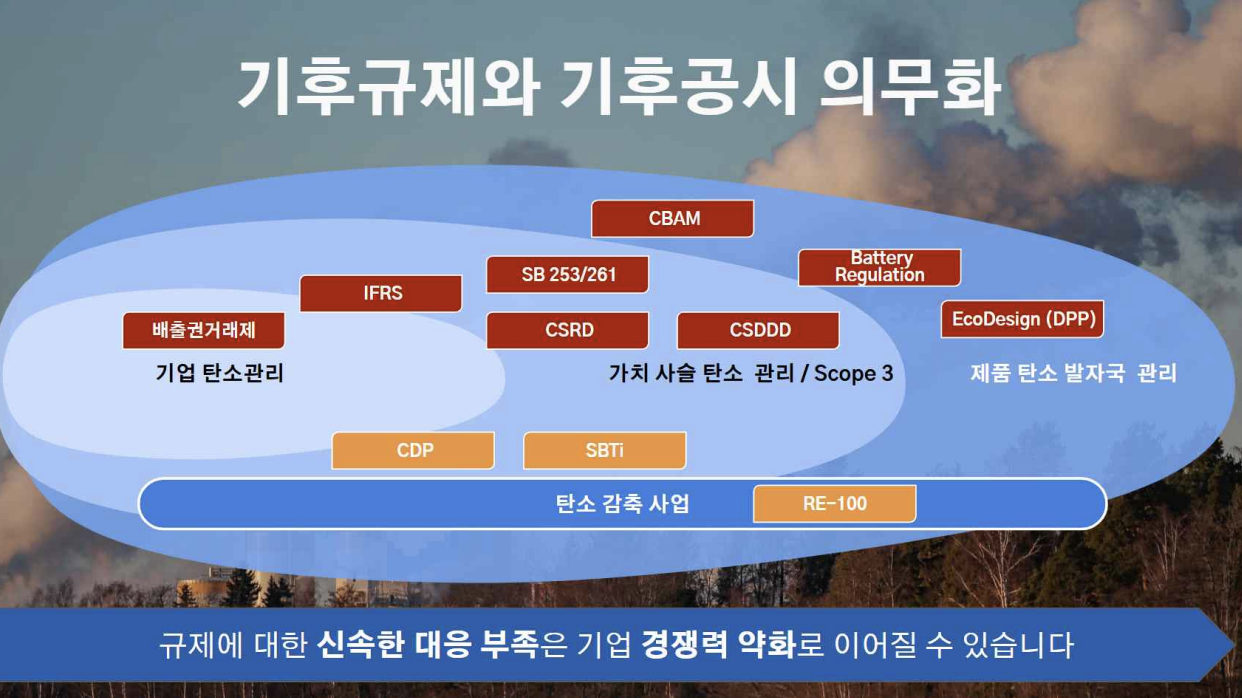 국제사회는 기후위기 대응을 위한 전방위적 규제 도입과 공시 기준 정비를 가속화하고 있으며, 이는 글로벌 공급망에 구조적 변화를 유발하고 있습니다.